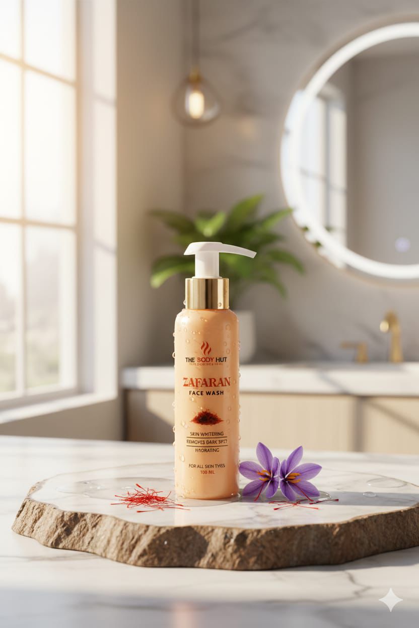 A whitening saffron face wash is a cleanser that uses saffron extract to brighten the skin, reduce dark spots and blemishes, and promote a radiant, even complexion. These washes typically remove dirt, oil, and impurities while often including other ingredients like zafran Niacinamide or Vitamin C to soothe, moisturize, and improve skin texture, making them suitable for various skin types. Â